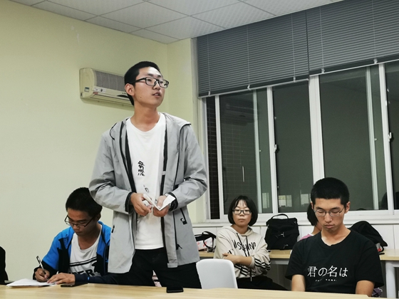 接着,由团支书韩璐来主题“学习习近平总书记十一重要讲话精神”分享。她谈到了国庆节的由来,国庆阅兵的意义,以及其所彰显的新时代赋予中华民族和中国人民的家国情怀和时代精神。