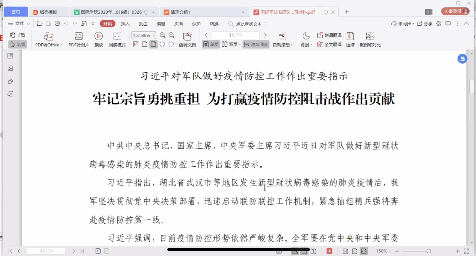 会议第二项,学生支部副书记张微东组织学习了习近平总书记关于抗击疫情的重要讲话,要求学生党员要结合中国共产党人的初心和中国特色社会主义制度来领会一系列讲话精神。