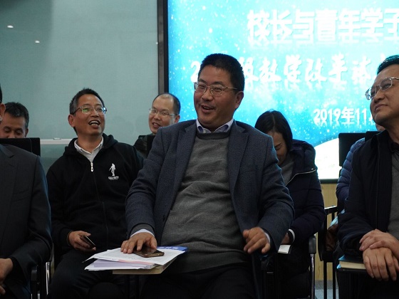 校长曹一家教授与学生面对面交流,他首先谈到大学生应当要立大志,结合自己的经历勉励学生敢于立志,在大学阶段不但要有学到知识,还要有胆识、有斗志,“一定要找到心灵深处的种子”。随后,教改班几名学生分享了自己关于思想、学习等方面的思考。曹校长强调,在学习的过程中,勤奋和刻苦是第一位的,对于困难要有斗争精神。教改班的学生更应当打好学科基础,为未来的国家建设做出贡献。教学改革试点班责任教授副校长蒋昌波教授指出,教改班的学生们要常自省、严自律、找差距,端正态度、善用方法、勤奋学习,建议学生们加强与导师的沟通。土木学院院长李传习教授,也鼓励学生们以高标准要求自己,锤炼健康的心态和体魄。