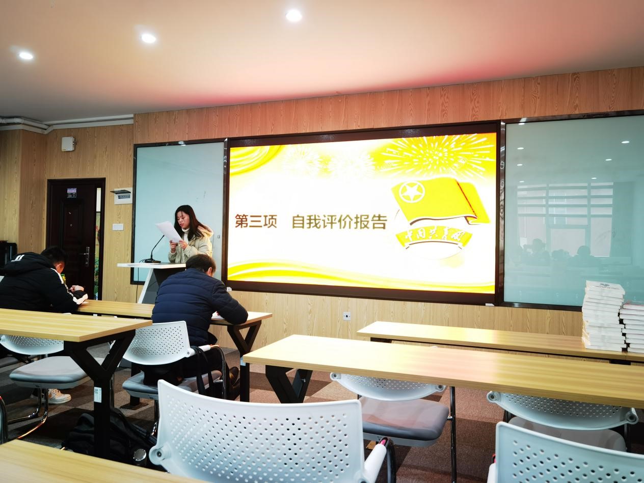 会议的第二项开展团支部评议,学生们依次上台进行自我评价报告,分析不足,许下期望与承诺。