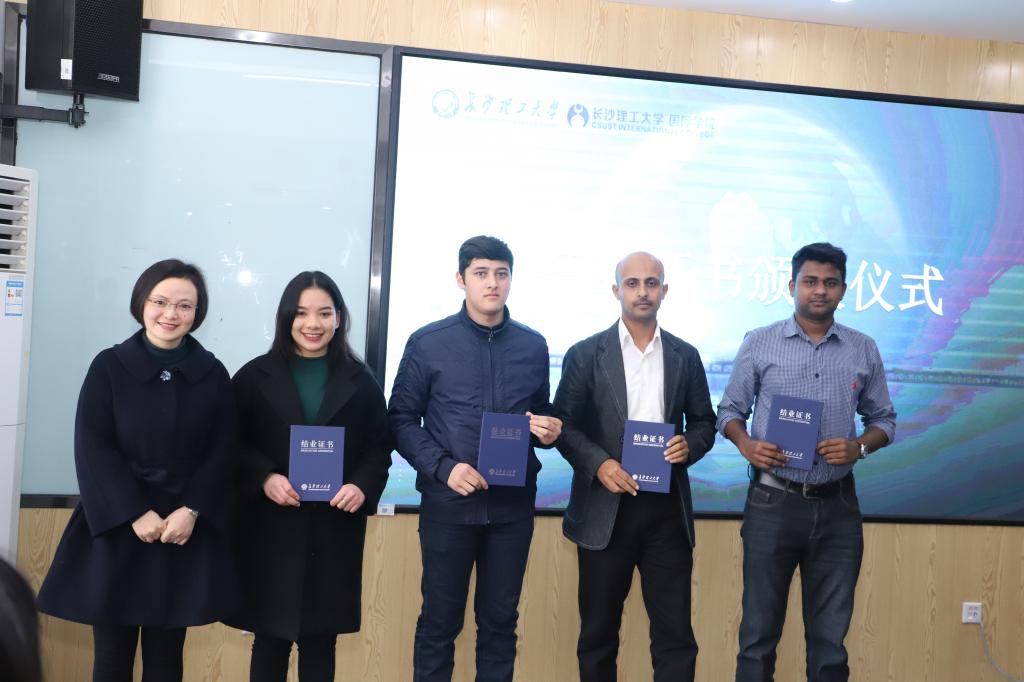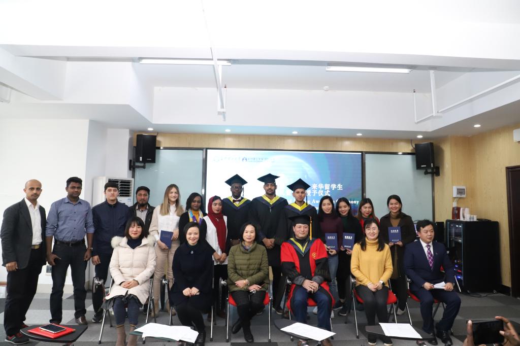 1月7日下午,XK星空2020届(春)来华留学生毕(结)业典礼暨学位授予仪式在国际学院举行。校党委委员兼国际学院党总支书记付嫦娥、国际学院院长陈瑜、土木学院副院长肖勇刚、国际学院副院长甘海鹰、国际学院学习与发展中心负责人汤路,以及国际学生工作办公室全体老师出席了典礼。典礼由国际学生工作办公室负责人王荟惠主持。