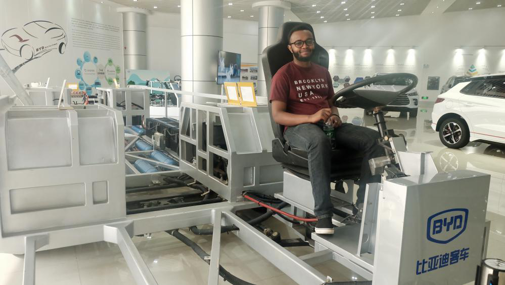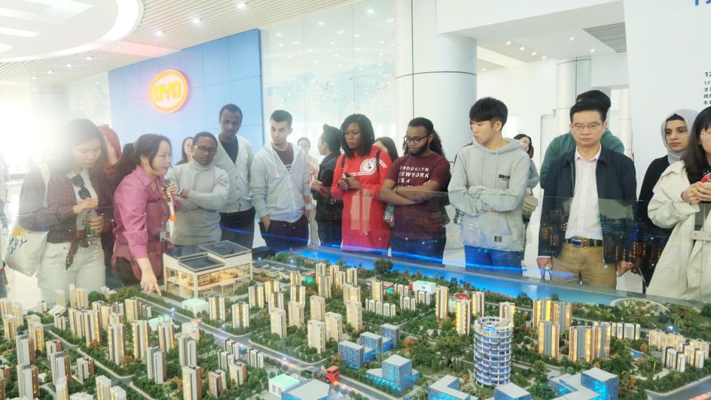 上午,同学们前往长沙比亚迪汽车有限公司参观学习。当看到无人驾驶汽车在自己面前缓缓开动并且减速后退,同学们纷纷赞叹这项新奇的技术。这一系列的绿色科研项目,让留学生们感受到了我国领先全球的新能源技术,并且学习了中国汽车制造和汽车工业相关知识。