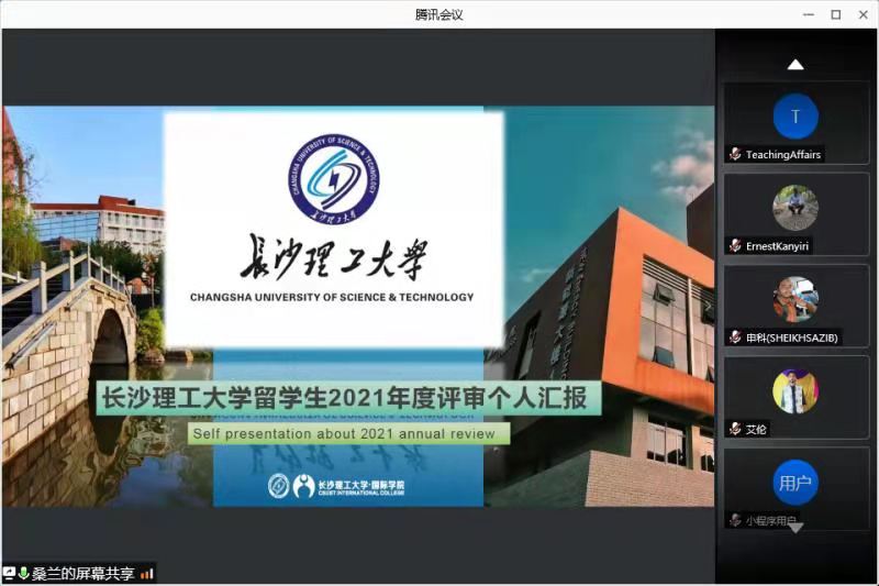 国际学院高度重视年度评审,制定评审方案,积极协调各教学院、学生导师参与年度评审各环节,组织参评学生认真准备个人汇报会。学生们用心准备了汇报PPT和演讲稿,从学习成绩、行为表现、学习态度和活动参与情况几方面介绍自己过去这一年的学习和生活。参加线上汇报的境外学生克服了网络和时差等困难利用腾讯会议进行个人陈述,参加线下现场汇报的境内学生共聚一堂,相互学习鼓励。不论是线上还是线下,汇报会的气氛都轻松愉悦而又不失认真严谨。