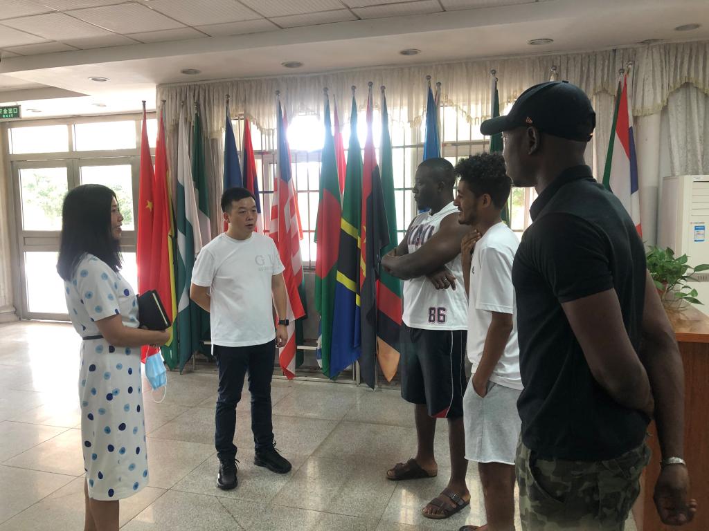 9月9日上午,分管留学生工作的副院长黄月华及留学生工作部老师走访了留学生公寓,看望和慰问了新生;并查看了新学期留学生报到情况以及留学生返校情况,与学生们亲切交流。