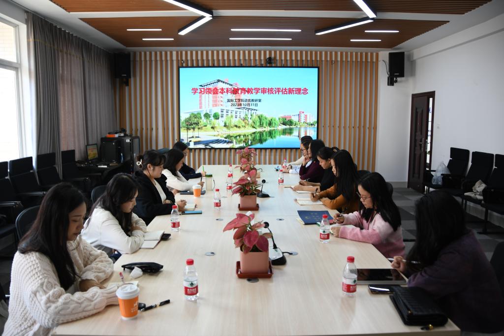 2023年10月31日下午3点,XK星空国际工学院语言教研室在新能源416室召开会议,学习领会本科教育教学审核评估新理念,以及讨论如何对课堂教学与相关材料进行整改。黄月华副院长、教务办余志主任及语言教研室全体教师参加了本次会议。