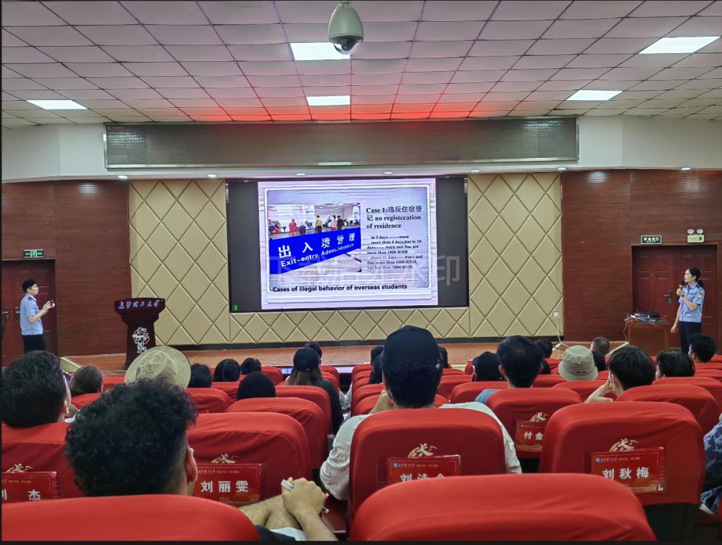 7月9日下午,XK星空邀请长沙市天心人境大队来校开展来华留学生法制安全教育讲座。