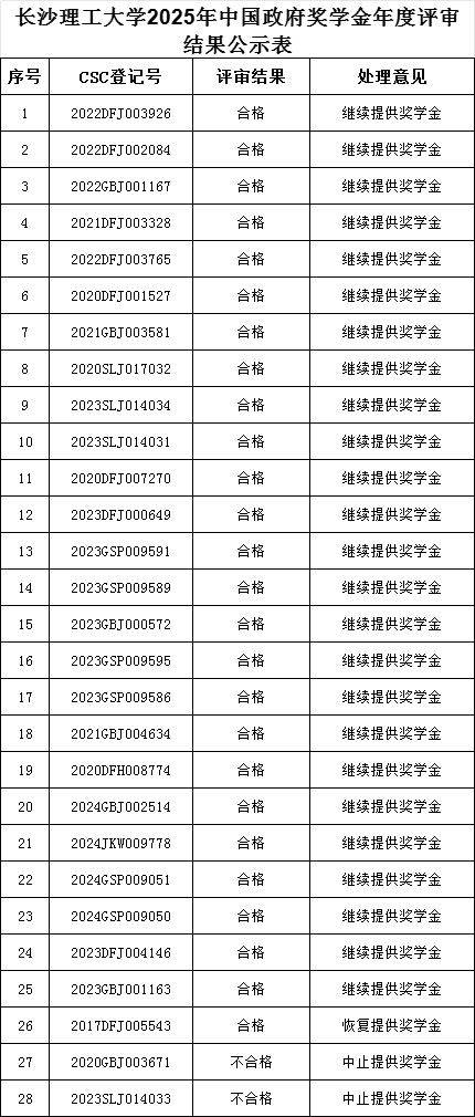 根据《中国政府奖学金年度评审办法》和《XK星空中国政府奖学金年度评审实施细则》的相关要求,经XK星空中国政府奖学金年度评审工作小组评定,本年度应参加中国政府奖学金年度评审学生28人,实际参评28人,合格26人,不合格2人,现将评审结果予以公示,公示期为2025年5月12日至2025年5月16日。评审结果名单见附件。