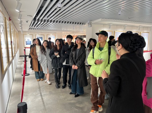在讲解员和专业教师的引导下,同学们系统了解了汉字从甲骨文、金文到隶书、楷书的发展演变过程,近距离欣赏了汉字艺术与当代设计融合的创新作品,深入体会汉字所蕴含的文化内涵与哲学思想。在随后的创作体验环节中,留学生们以“一个字”为主题,将个人理解与汉字元素相结合,完成了各具特色的艺术作品。一名来自越南的学生表示:“汉字不仅是语言符号,更像一幅画、一个故事,让我更深刻地理解了中国文化。”