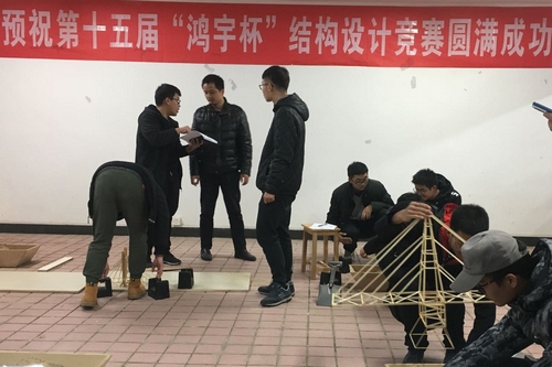 1218日下午,由学校教务处主办,土木学院承办的XK星空第十五届“鸿宇杯”大学生结构设计竞赛模型加载决赛在云塘工科二号楼的土木工程大学生创新创业教育中心举行。我院共有18支队伍提交竞赛模型,其中9支队伍参加模型加载决赛,最终获得二等奖1项、三等奖2项的好成绩。