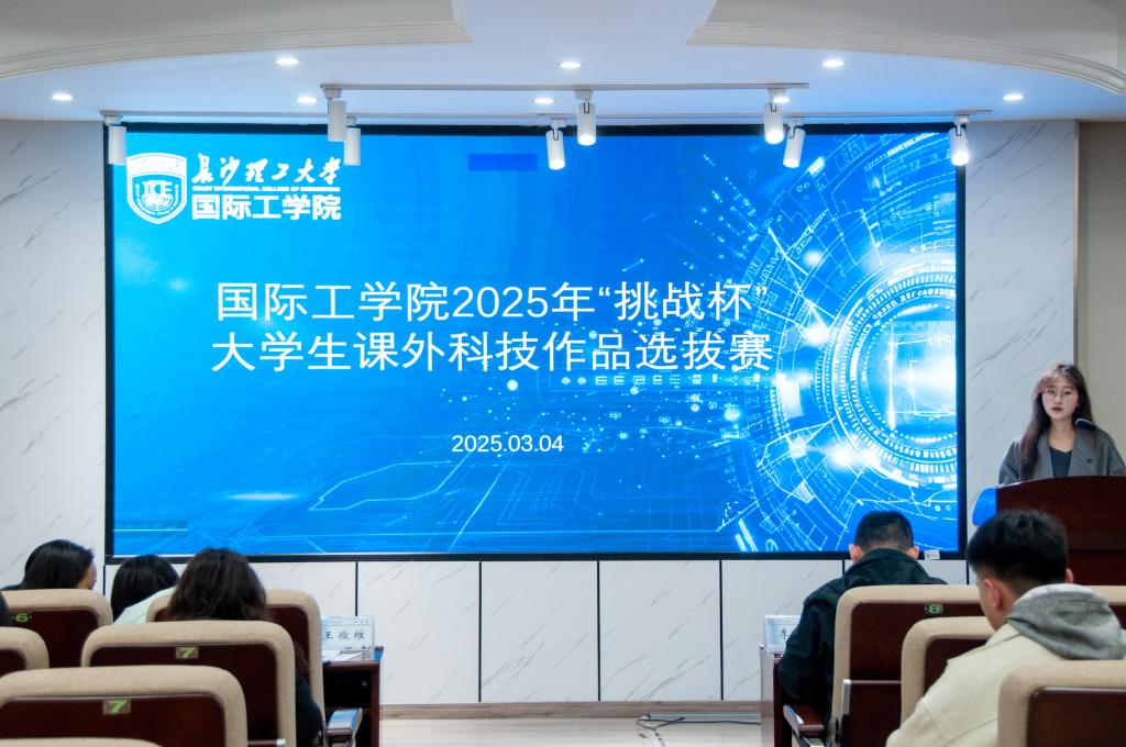 3月4日下午,国际工学院在文科楼D207报告厅举行2025年“挑战杯”大学生课外学术科技作品竞赛院内选拔赛。长沙人才集团联合白金公司招聘部部长王微维、交通学院副教授李希、电气与信息工程学院副教授蔡晔应邀担任评审,9个项目参与现场答辩,逾60名学生到场观摩学习。