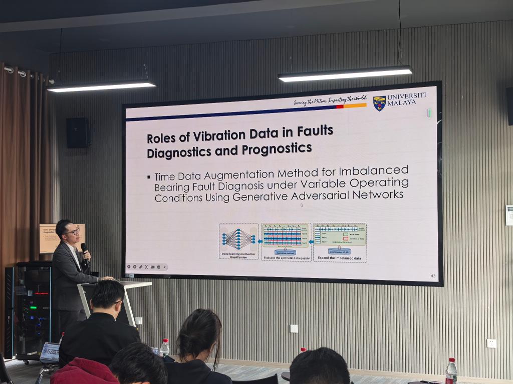 随后,由ONG ZHI CHAO副教授以“振动分析与状态监测的进展:探讨预测性维护和可持续性运营的新视角”为题作第二场讲座,介绍了团队研发的冲击同步模态分析(ISMA)技术,以及该技术在教学、科研及工业场景的成功应用,为设备“未病先防”的预测性维护提供了硬核支撑,最后他还向在场学生推介了马来亚大学针对XK星空项目学生的研究生项目,鼓励大家前往马来亚大学深造。
