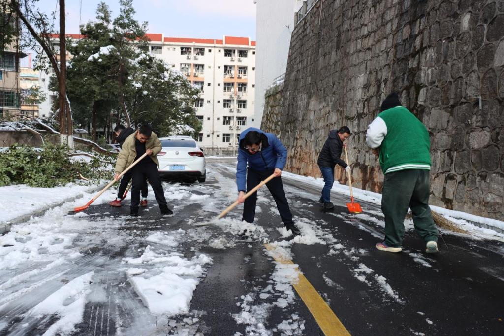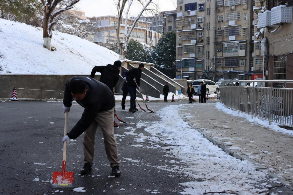 1月22日,长沙迎来了2024年第一场大降雪。一夜之间,漫天大雪银装素裹,虽装饰了大地、滋润了万物,但气温骤降,路面积雪迅速结冰,给大家的出行带来了极大不便。为清除道路安全隐患,检测公司党支部坚守为民服务初心,充分发挥战斗堡垒作用,组织党员开展扫雪除冰活动,全力保障职工及附近居民的出行安全。消除教职工及家属们出行安全隐患。