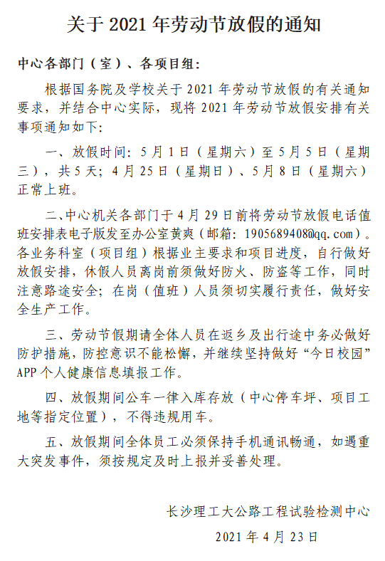 上一条:关于2021年端午节放假的通知 下一条:关于2021年清明节放假的通知