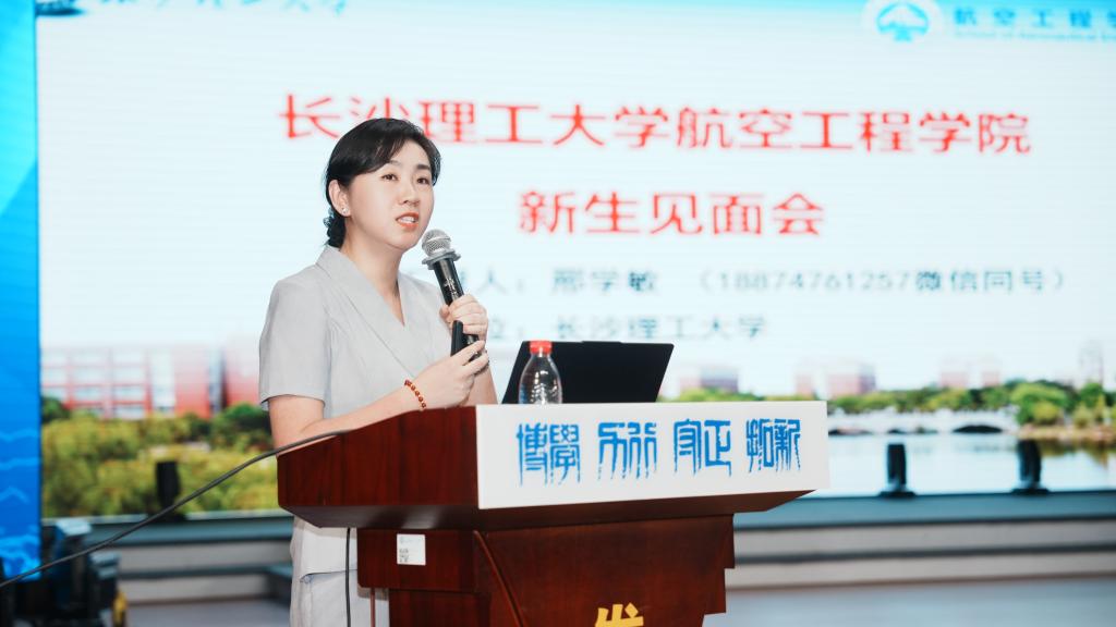 张云菲围绕“学院是什么、教什么、有什么特色” 三大核心问题,向同学们全面介绍了学院基本情况。从学院的组建背景、师资队伍构成,到本科专业设置、课程体系建设,再到主动服务“低空经济”与“交通强国”的办学特色,张云菲用详实的数据与生动的案例,让同学们对学院教学情况有了清晰认知,她鼓励同学们要坚定信心,深耕本专业,在低空赛道上找准方向,练就真本领。邢学敏聚焦学科建设与科研创新,为同学们勾勒了学院的“学术蓝图”,详细介绍了学院的学科定位、科研团队优势以及研究生培养成效。她表示:“无论是本科生想参与科研项目,还是未来有考研深造需求,学院都能提供优质平台,期待同学们的加入。”