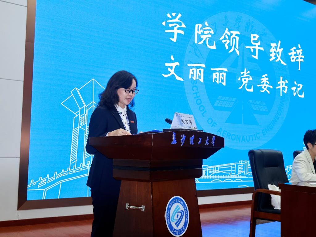 典礼在庄严的国歌声中拉开帷幕,随后党委书记文丽丽代表学院向全体新生致以最热烈的欢迎,她在讲话中回溯学院自成立以来取得的突破和成绩,她对同学们提出了三点希望:一是新阶段怀新梦想,志存高远、做有家国情怀的测绘人;二是新领域要学新本领,融会贯通、做掌握跨学科交叉知识的航空人;三是新时代要绘新蓝图,锐意创新、做引领变革的长理人。她勉励全体同学们胸怀“航空报国”之志,成长为“底色亮、能力强、善创新、敢担当”的长理人,书写无愧于时代的青春华章。