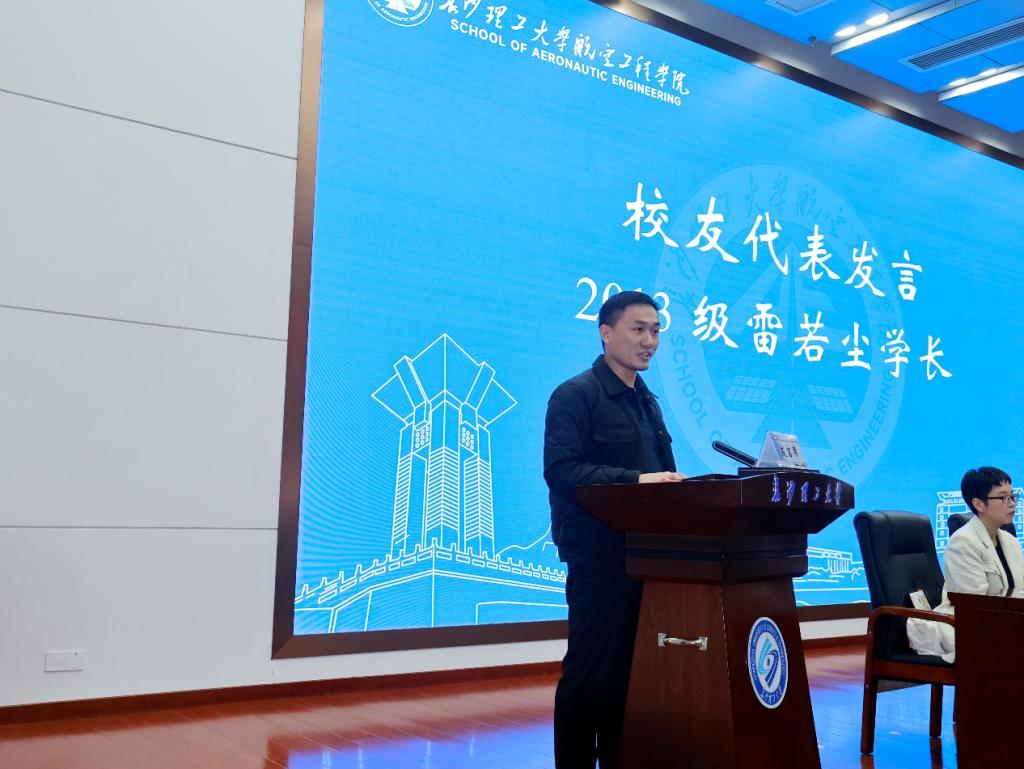 教师代表谢树春叮嘱同学们主动与师长交流沟通,深耕学业,在大学这片沃土中汲取养分,夯实学识,锤炼真本领;优秀校友雷若尘结合自身从校园到职场的成长经历,激励学弟学妹永葆探索热情、勇敢面对挫折挑战;新生代表孟章婧满怀热忱的发言道出了全体新生的激动与憧憬,她表示,将与全体“航空一期”的同学们一起,不负韶华,努力成为学院历史中最闪亮的起点。