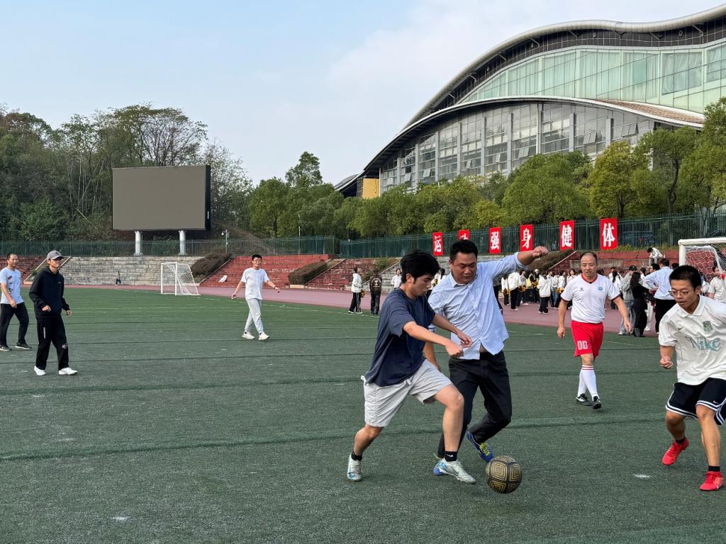 绿茵场上高潮迭起,精彩场面不断涌现。不论是教师队巧妙的战术配合、极具威胁的射门,还是学生队犀利的个人突破,都引得场上球员的阵阵欢呼与掌声,现场气氛持续升温。整场比赛始终在快节奏与高强度对抗中进行,双方都展现出良好的体育精神和竞技水平。最终,在一片喝彩声中,这场精彩纷呈的师生足球友谊赛顺利结束,充分体现了“友谊第一,比赛第二”的宗旨。