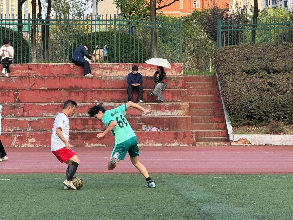 比赛在热烈的气氛中拉开战幕,双方迅速进入状态,展开激烈较量。教师队斗志昂扬、配合默契,教师队进入状态较快,凭借娴熟的脚下技术和默契的传接配合,屡屡组织起有威胁的进攻。学生队则展现迅速的跑动和积极的拼抢意识,脚下盘带、边路突破等场面接连上演,比赛前半段,学生队火力全开,展现出青春的活力与冲劲。