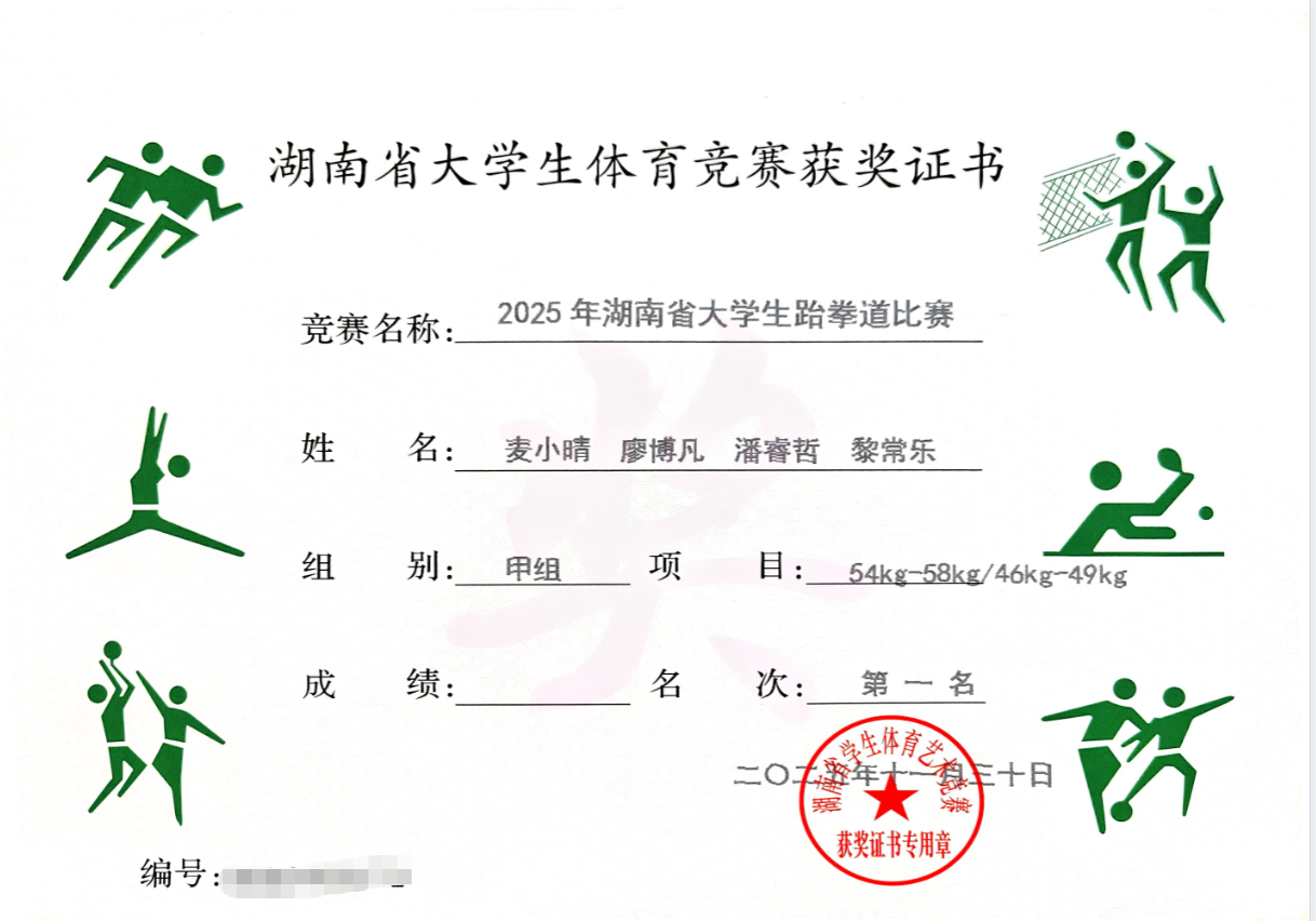 2025年12月3日,2025年湖南省大学生跆拳道比赛在湖南警察学院隆重闭幕。本届赛事云集全省数十所高校的跆拳道健儿,赛场角逐激烈,赛事精彩纷呈。XK星空航空工程学院地信2501班麦小晴、地信2301班黎常乐凭借精湛技艺、顽强斗志与优良体育风貌奋勇拼搏,最终脱颖而出斩获多项佳绩。