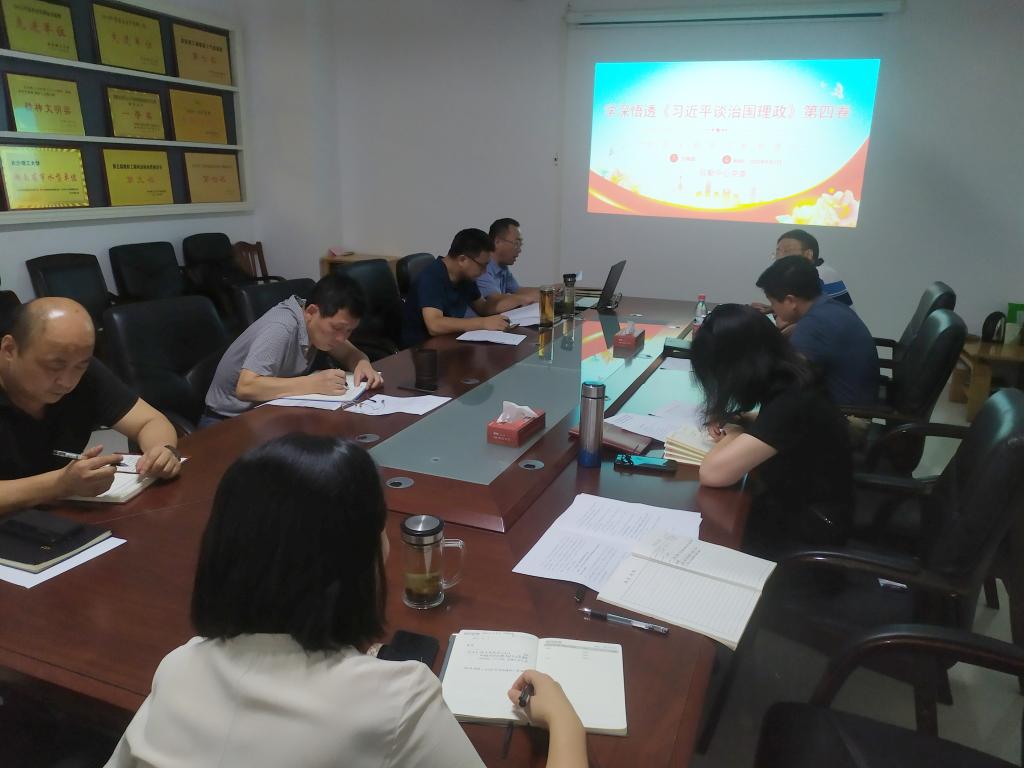 王明彦首先传达学习了关于认真组织学习《习近平谈治国理政》第四卷的通知。他指出,在全党全社会喜迎党的二十大胜利召开之际,《习近平谈治国理政》第四卷出版发行,是党和国家政治生活中的一件大事,是党的思想建设上的一件大事。《习近平谈治国理政》第四卷集中展现了马克思主义中国化时代化的最新成果,是全面系统反映习近平新时代中国特色社会主义思想的权威著作。学好用好《习近平谈治国理政》第四卷,对于推动广大党员干部群众进一步增强学思想、悟思想、用思想的自觉性坚定性,不断提高政治判断力、政治领悟力、政治执行力,在新时代新征程上团结奋斗、勇毅前行,具有重要意义。他强调,认真学习《习近平谈治国理政》第四卷,是用习近平新时代中国特色社会主义思想武装全党、教育人民的重大政治任务,领导干部要带头学、引领学,做到全体教职员工学习全覆盖,引导广大党员干部读原著学原文、悟原理知原义,真正做到虔诚而执着、至信而深厚。