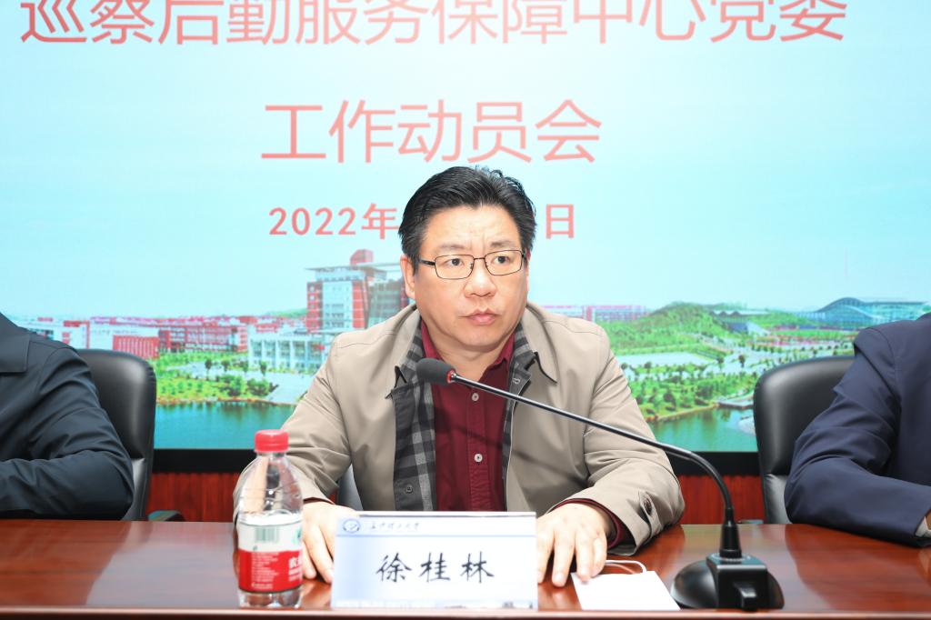 徐桂林指出,巡视巡察是党章赋予的重要职责,是我们党进行自我革命的战略性制度安排,是党之利器、国之利器。他强调,一要深入学习贯彻党的二十大精神,准确把握做好新时代巡察工作的重要意义。开展校内巡察工作是贯彻落实党中央、省委和学校党委重大决策部署的重要保障;是推进新时代党的建设的重要举措;是落实全面从严治党要求,建设“清廉长理”的重要保证;是密切联系群众的重要纽带。二要精准查找政治偏差,推动后勤中心党委更好履行职责使命。要突出党的政治建设,不断提高政治判断力、政治领悟力、政治执行力;要强化“服务育人”意识,努力构建让全校师生都满意的后勤服务体系;要紧盯关键少数,“一把手”和班子成员要自觉接受监督并加强对下级“一把手”和干部的监督,规范权力运行,防范廉洁风险。三要自觉接受监督,以巡察为契机推动后勤服务保障中心事业高质量发展。后勤中心党委领导班子要提高政治站位,全力配合巡察工作;要强化政治担当,扎实推动整改;要落实政治责任,推动后勤发展,切实以巡促改、以巡促建、以巡促治,努力把巡察成效体现到推动本单位高质量发展上来。