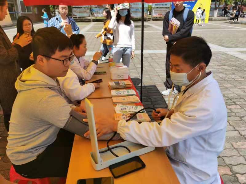 在汀香园食堂前坪,医护人员利用横幅、海报、知识展板、播放知识录音、散发知识折页、现场咨询等形式向学生进行知识宣传。同时还组织线上答题活动,同学们通过线上扫码回答问题,了解相关知识。