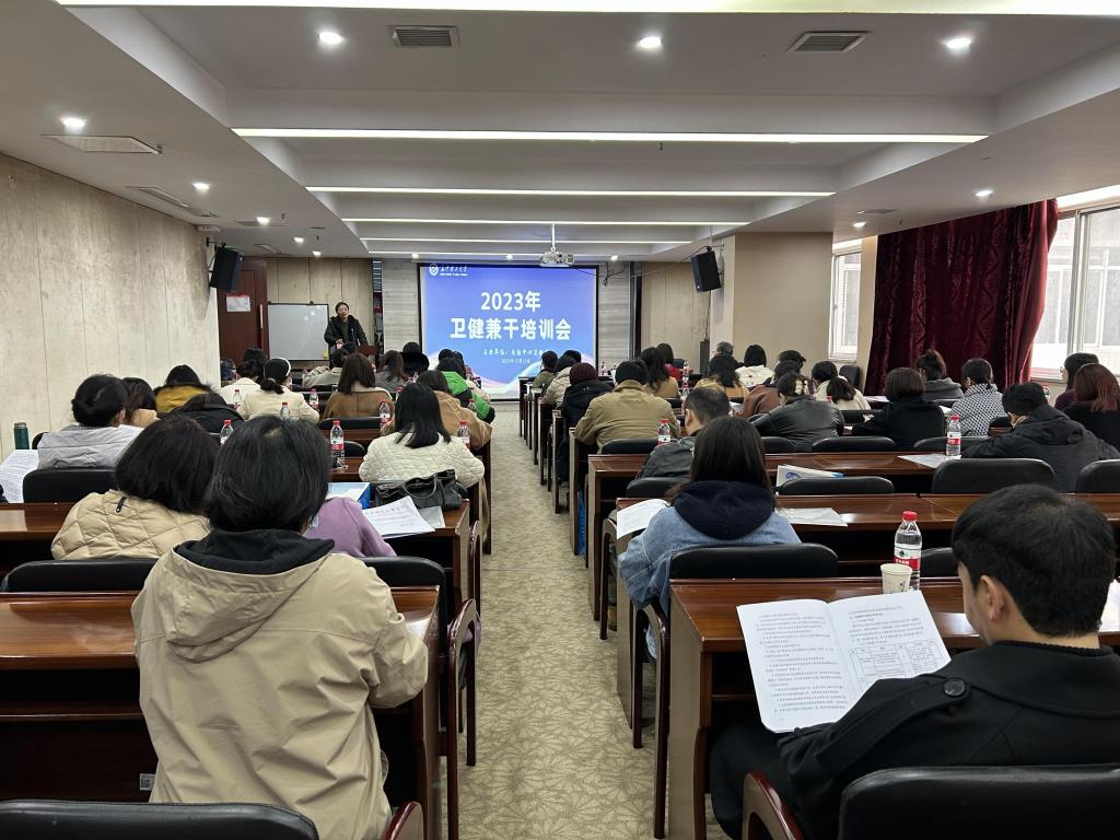 12月12日上午,全校卫健兼干培训会议在国际学术交流中心二楼一会议室举行。后勤中心党委副书记陈林峰、校医院党支部书记莫雅元、校属各单位卫健兼干、卫健办工作人员50余人参加培训。