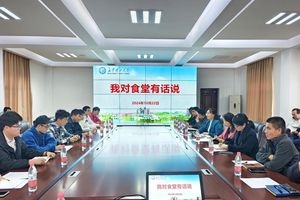 10月22日下午,餐饮服务部在云塘校区节能平台会议室召开2024年第四期“我对食堂有话说”学生座谈会。后勤中心副主任邓应军,人事与质量监管办公室、餐饮服务部办公室、各食堂负责人以及来自学校权益部和各学院的24名学生代表参加了座谈会。会议由餐饮服务部主任阳伶主持。