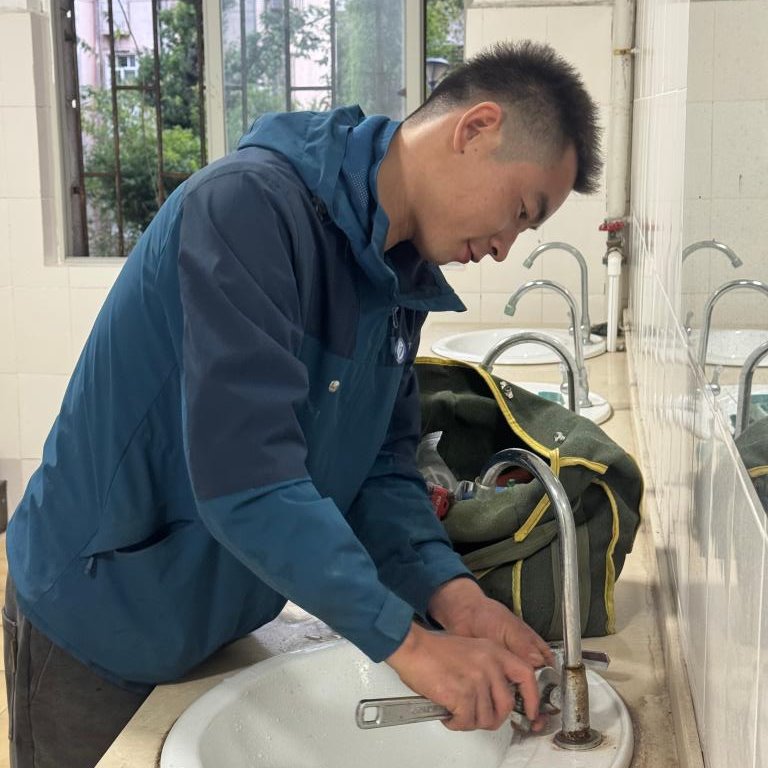 “工单上的每一行字,都牵着师生的急难愁盼。”杨小生总把这句话挂在嘴边,也把这份责任“放在心上”,融进每一次维修里。教学楼内洗手台盆开裂渗水,不仅弄脏地面,更因湿滑瓷砖给师生通行埋下安全隐患。接到报修时已临近下班,杨小生顾不上休息,扛着新盆、拿着扳手直奔现场。他先小心翼翼拆卸旧盆,避免损坏台面;再蹲在地上,用工具一点点清理残留玻璃胶,即便指尖被胶水粘得发紧也毫不在意;最后精准对齐安装新盆,并反复开水测试,确认“一滴水不渗”才放心离开。“杨师傅修东西,我们特别放心,他总比别人多考虑一步,返修率几乎为零”,提起他,师生们的评价里满是认可,而这份认可,正是他用“不敷衍、不将就”的零懈怠态度,一点点攒下的信任。