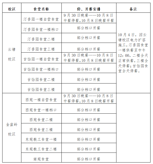 关于2025年国庆节、中秋节食堂停、开餐的通知