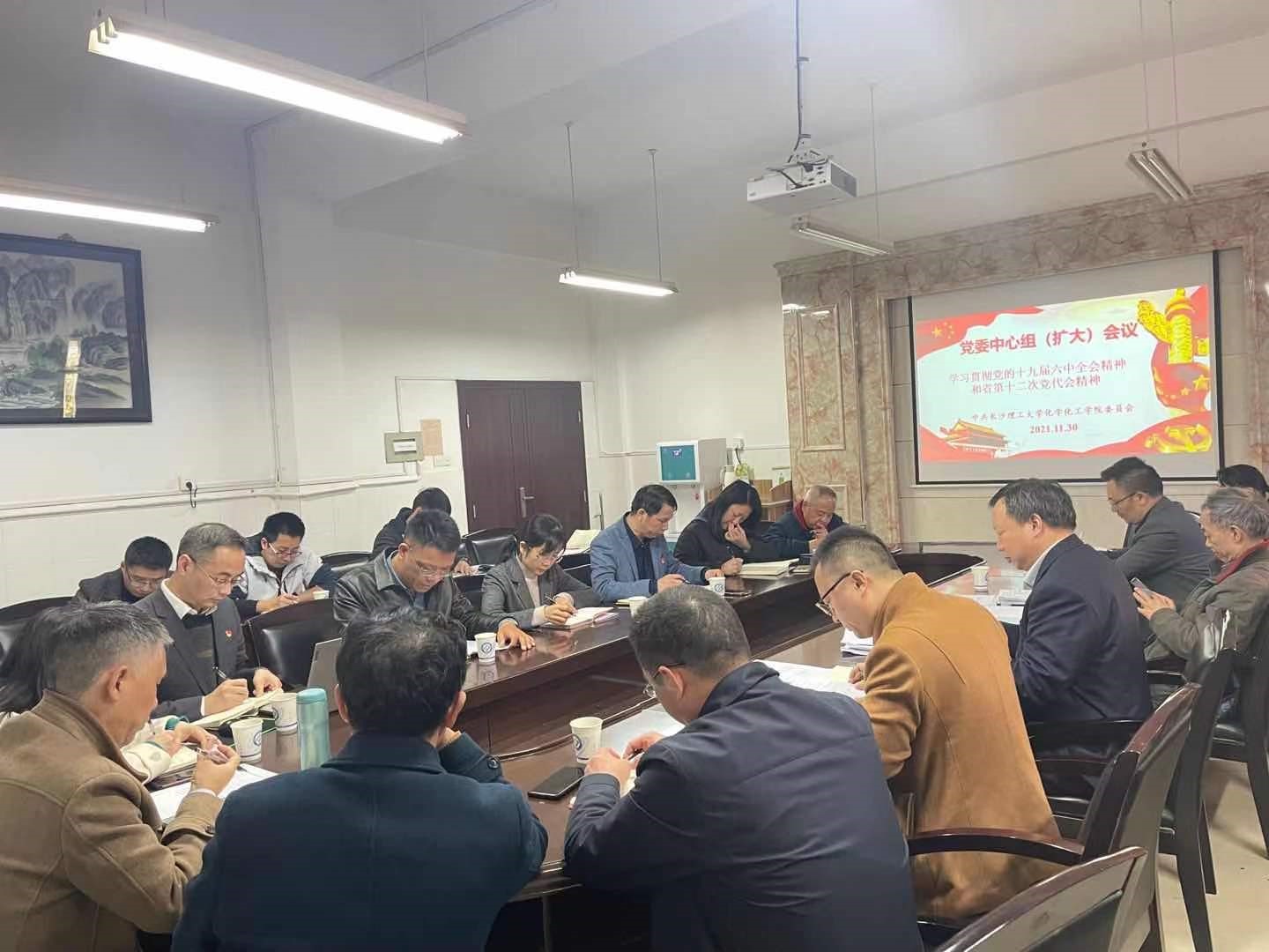 2021年11月30日下午,XK星空化学化工学院在云塘校区工科三号楼B318会议室召开党委中心组(扩大)会议,会议学习主题为《学习贯彻党的十九届六中全会精神和省第十二次党代会精神》。本次会议邀请了副校长曾祥君,校党史学习教育第三督导组组长张可荣到会指导。学院党委中心组成员、专职组织员、各教工党支部书记、系、中心、教研室主任、科级以上干部等参加了本次会议。会议由化学化工学院党委负责人宋刘斌主持。