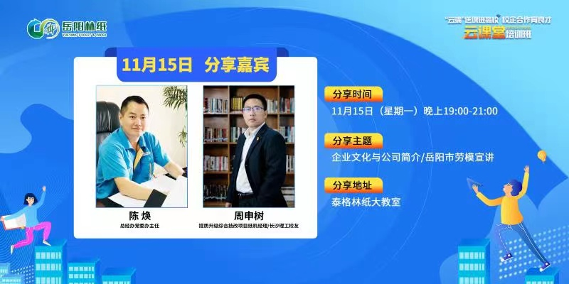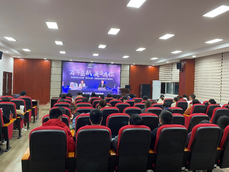 此次“云”实训班于11月15日正式开课。岳阳林纸分公司人力资源部经理闫波涛开班致辞,对参与“云课堂”实训班的学员寄予殷切希望并提出学习要求。总经办党委办主任陈焕详细介绍了岳阳林纸公司的发展变革及文化传承,使同学们深入了解了企业“向文明、德载业、竞天择、新致远"的价值体系与力量源泉。一个成功的企业,必然有一种优秀的文化做支撑,企业文化作为强大的精神力量,激励着一代代岳纸人拼搏前进;,岳阳市劳动模范,提质项目纸机经理周申树对待工作的干劲和拼劲正是无数兢兢业业坚守岗位的岳纸人的缩影。岳阳林纸公司作为央企,坚持党建引领和绿色发展,坚持改革创新,大力推崇爱岗敬业精神,吸引XK星空轻化工程、化学工艺与工程、应用化学、环境工程、机械工程等多个专业应届毕业生前来参加空中招聘宣讲会。