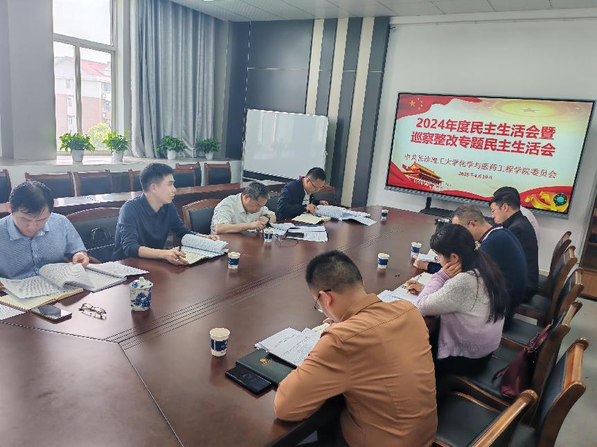 4月10日下午,化学与医药工程学院党委在工科三号楼B446会议室召开2024年度民主生活会暨巡察整改专题民主生活会。校党委委员、副校长胡永乐,组织部副部长、党校副校长王煜坤到会督查指导,会议由学院党委书记宋刘斌主持。
