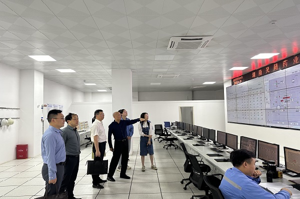 座谈会后,在钱晨的陪同下,学院代表团参观了吴赣药业参观研发中心、中央控制室和安全监控中心。钱晨详细介绍了公司的主营业务、核心技术及在医药领域的行业优势。张跃飞对吴赣药业在绿色制药工艺研发和智能化生产方面的成果表示高度赞赏,并强调企业实践对高校学科建设与教学改革的指导意义。