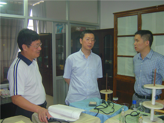 6月4日上午,孙教授在化学学院党委书记、电力与交通材料保护湖南省重点实验室主任曹忠教授和重点实验室副主任曾巨澜博士的陪同下参观了省重点实验室,孙教授高度评价了重点实验室和我院相关学科近年来取得的重要研究成果和最新进展,深入指导了相变储能材料与材料热力学实验研究的开展,希望进一步拓展双方学院省部级重点实验室的交流与合作。