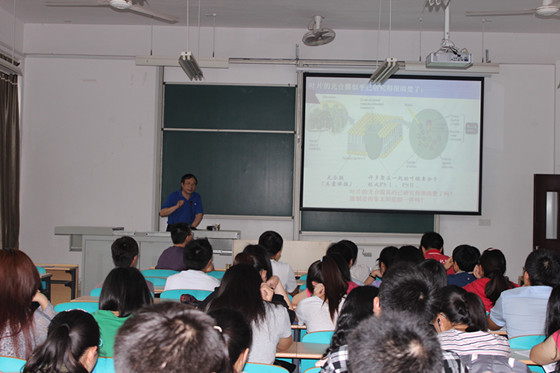 郭博士的讲座内容属于国家杂交水稻研究工程中心袁隆平院士主持的国家863项目分项目的研究课题,他首先向大家介绍了光合膜的结构、作用及其神秘性,剖析了当前人类光合膜研究面临的难点与困惑及其研究的重大意义,阐述了与国家杂交水稻研究工程中心开展的“水稻光合膜及其光合生产”项目的研究成果,从提出假设到研究求证,跟师生们分享了自己的独特见解,其研究的前沿性及新颖的创新研究方法使大家耳目一新,受益匪浅。