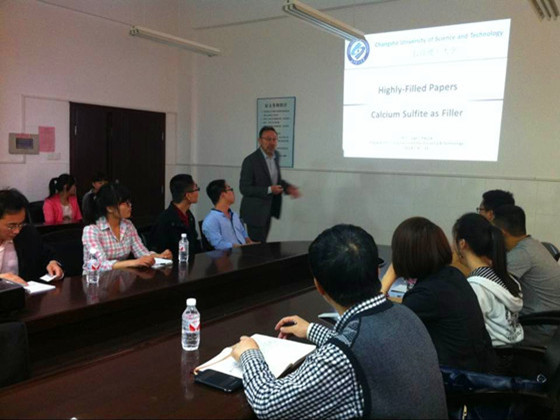报告中,Ivan I. Pikulik 教授结合自身研究经历及欧洲、北美制浆造纸工业目前应用技术和革新,详细介绍了纸张高加填技术、硫酸钙晶须造纸应用技术、二次纤维胶粘物控制技术、生物精炼技术、造纸新技术发展及如何成为一名优秀的工程师等。学术报告形式灵活,报告均采用英文讲授,为了提高交流效果,部分专题报告配备了中文翻译。Ivan I. Pikulik 教授渊博的知识、精辟的学术见解、幽默风趣的讲授风格深深的打动了参加学术交流的师生,经过一周的学术交流,广大师生受益匪浅,同时也热切希望以后有更多机会加强国际学术交流。
