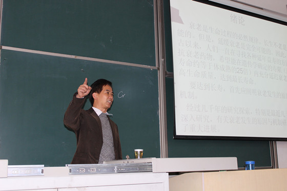 在历时1个半小时的讲座中,陶教授把理论与自己的亲身科研实践结合,深入浅出地报告了衰老与抗衰老领域的新成果和新进展,并详细回答了师生的提问,让师生对这一科研领域有了深刻的了解。报告结束时,师生以热烈的掌声对陶钧教授的精彩报告表示感谢。