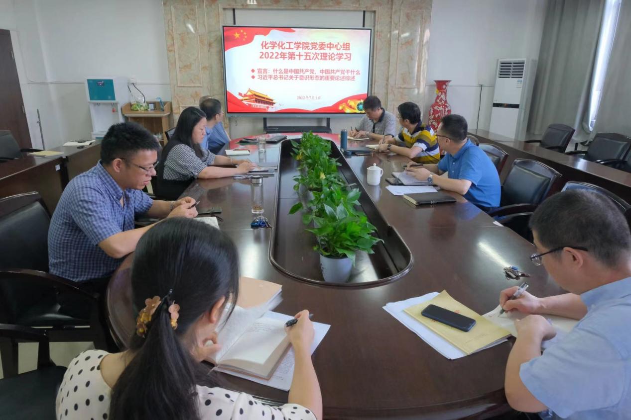 2022年7月1日上午,学院党委理论学习中心组在工科三号楼B318会议室组织集中学习,会议深入学习了《宣言:什么是中国共产党,中国共产党干什么》,传达学习了习近平总书记关于意识形态工作的重要论述综述。本次会议由党委书记宋刘斌主持并讲话,中心组全体成员参加学习。党委副书记、副院长陶双领学,副院长喻林萍作学习发言。