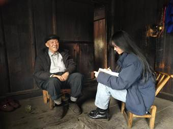 学生党员正在采访老党员