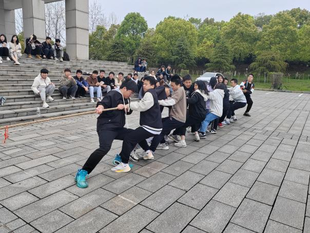 拔河比赛两两对战,每一个参赛者都斗志满满,为获得胜利出谋划策。本游戏分为三轮,组与组之间有的胶着不下,有的轻松拿下,战况紧张而激烈,但又充满欢乐。对战结束后,大家意犹未尽,有同学选择单人对战,场面刺激而高亢。赛后,大家进行了放松的套圈游戏,愉快地结束最后的活动。