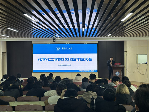 12月20日下午,化学化工学院在工科三号楼A307会议室召开了2022级本科生年级大会。会议就2022级同学们在学业、学科竞赛中的优异成绩进行了表彰,同时分析总结了学风建设中的不足,并为同学们未来的学习和发展提供了指导与建议。会议由年级辅导员张航主持,学院党委副书记李家春出席了本次会议。