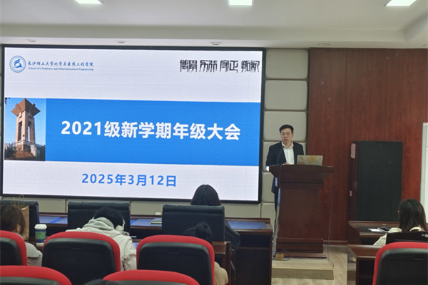 2025年3月12日下午,XK星空化学与医药工程学院2021级本科生年级大会在云塘校区工科三号楼A320报告厅举行,学院党委副书记、2021级辅导员李家春出席会议并讲话,全体2021级全体同学参会。
