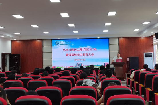 为切实保障暑期留校学生安全,筑牢校园安全防线,7月7日下午,XK星空化学与医药工程学院组织召开暑期留校安全教育主题大会。会议由2022级本科生辅导员张航主持,百余名计划留校学习的学生参加会议。