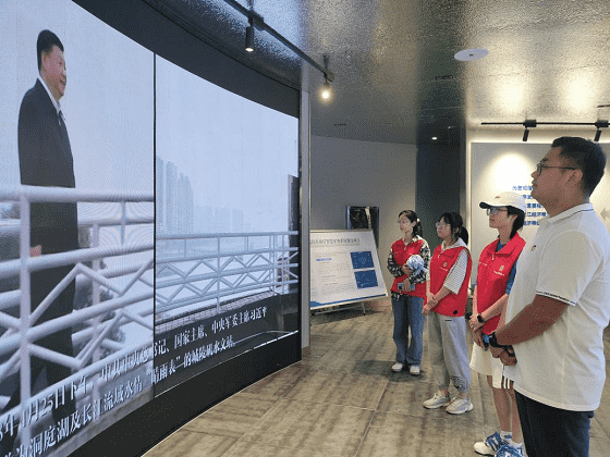 离开城陵矶水文站,湿地使者党支部成员又来到“河小青”青少年生态文明教育实践基地进行参观学习。成员们了解到岳阳市水环境治理的“关、退、禁、清、建、绿、问”的组合拳,进一步感悟习近平总书记重要讲话精神。岳阳楼区团委书记彭今成在参观结束后深情地嘱咐成员们:“守护好一江碧水,离不开青年力量的参与,希望你们能够学好专业知识,用实际行动践行保护绿水青山的誓言!”湿地使者党支部的成员们大受鼓舞,决心以更加饱满的热情投入到接下来的社会实践中去,将激情与汗水洒在环保事业的土壤上
