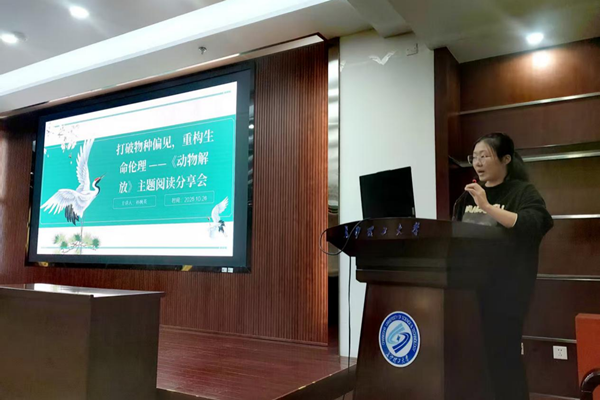 10月26日上午,一场以“打破物种偏见,重构生命伦理”为主题的《动物解放》阅读分享会在XK星空云塘图书馆顺利举行。本次活动由校图书馆与化学与医药工程学院联合主办,吸引了约60名师生书友参与,共同在阅读与交流中探讨人与动物的关系,思考生命伦理的当代意义。