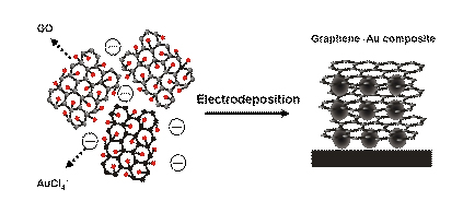 石墨烯因其独特的电学性能、力学性能、热性能和高的比表面积,近年来受到化学、物理、材料、能源、环境等领域的极大重视。石墨烯及其复合物的制备是石墨烯研究领域一个极其重要的课题,如何简单、快速、绿色地制备石墨烯及其复合物,而又防止石墨烯片的聚集是石墨烯基材料得以大规模应用的前提。目前报道的石墨烯基复合材料的制备是先将氧化石墨烯化学或热还原成石墨烯,然后再与其他组分(或其前驱物)通过化学或物理方法复合。这一过程不但涉及高毒性化学试剂、高温和多步反应,还存在石墨烯片的聚集、各组分分布不可控等缺点。罗胜联教授课题组直接以氧化石墨烯和金属盐的水溶液为原料,通过一步电沉积直接制备得到石墨烯片与金属纳米粒子交替组装的层状结构,金属纳米粒子层阻挡了石墨烯片的聚集,同时又充当石墨烯片之间的导电通道,使得该复合薄膜具有极高的比表面积和导电性。该方法无需有毒化学试剂、高温和多步反应过程,具有简单、快速和绿色特点,可进一步延伸制备其它石墨烯基复合材料。