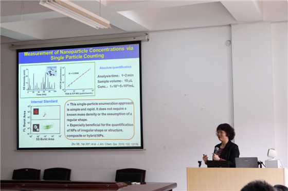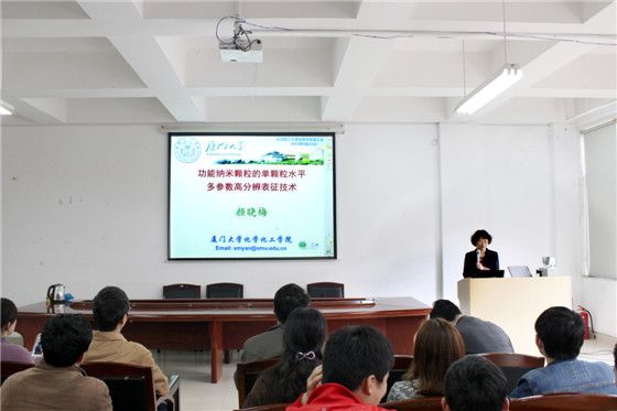 4月21日下午2:30,应XK星空化学与生物工程学院邀请,国家杰出青年科学基金获得者、厦门大学化学生物学系主任、博士生导师颜晓梅教授应邀来XK星空讲学, 在云塘校区工科三号楼A-320会议室作了题为“功能纳米颗粒的单颗粒水平多参数高分辨表征技术”的学术报告,会议由化学学院院长杨荣华教授主持,化学、食品、生物、化工等相关学科的教师、研究生、本科生共百余人聆听了报告。