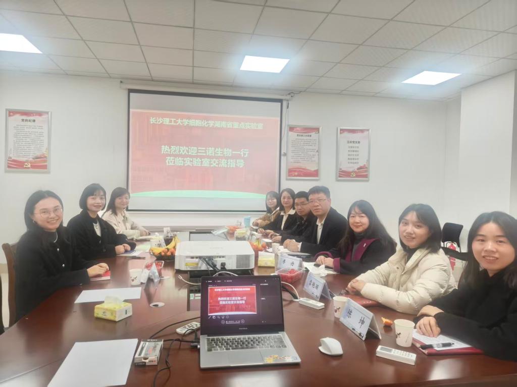 2026年2月4日,三诺生物传感股份有限公司党委书记颜晓等一行到访细胞化学湖南省重点实验室,开展技术交流与“产学研用”合作座谈。XK星空科技处副处长、实验室主任卿志和教授率团队接待,双方围绕居家健康检测技术前沿、科技成果转化及未来合作方向展开深入探讨。