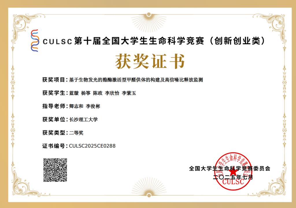 获奖等级:第十届全国大学生生命科学竞赛(创新创业类)二等奖